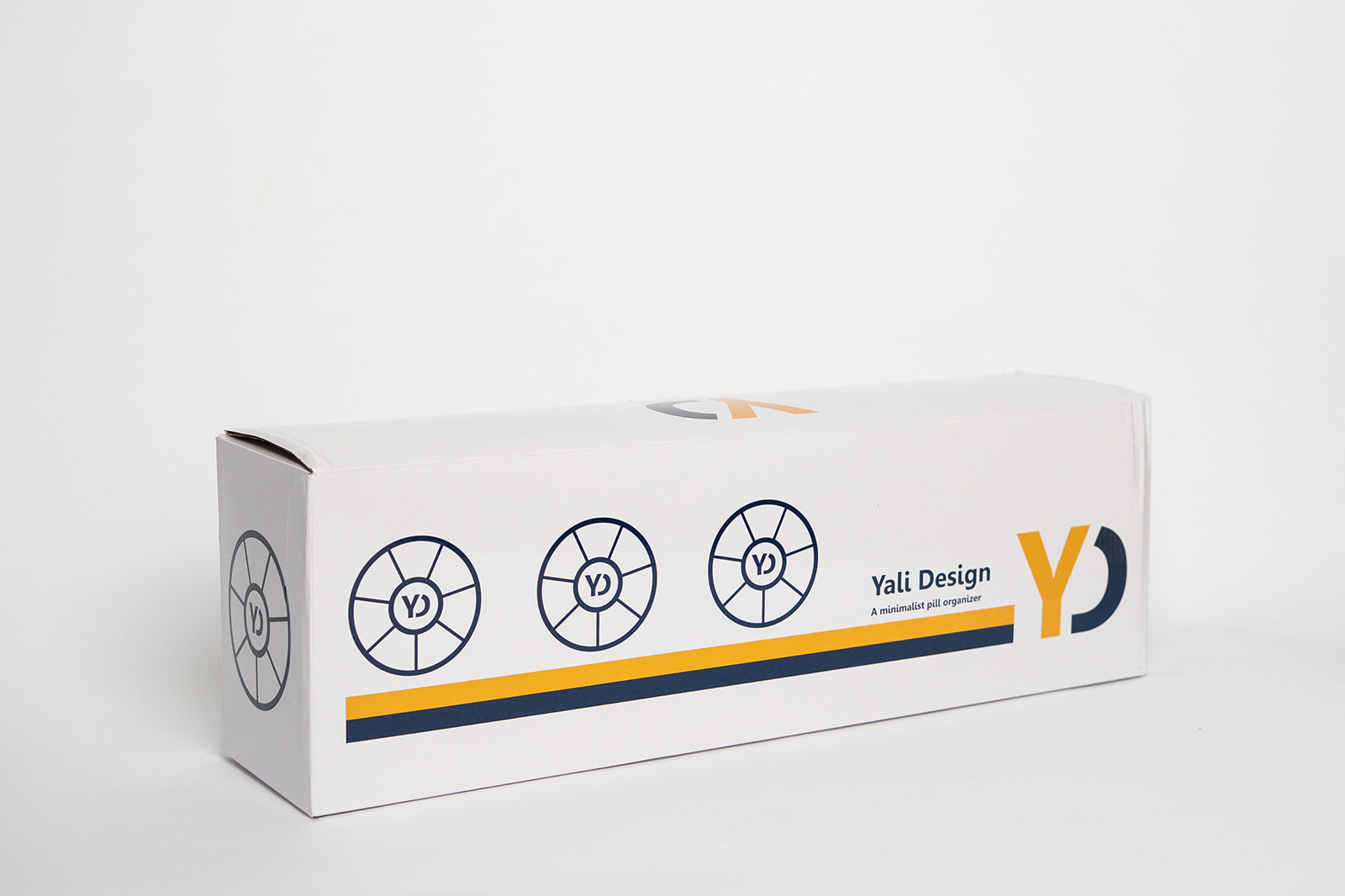 Peel off the adhesive protection sticker and stick it to the underside of your medicine bottle cap. Open the chambers and load your weekly medicine.